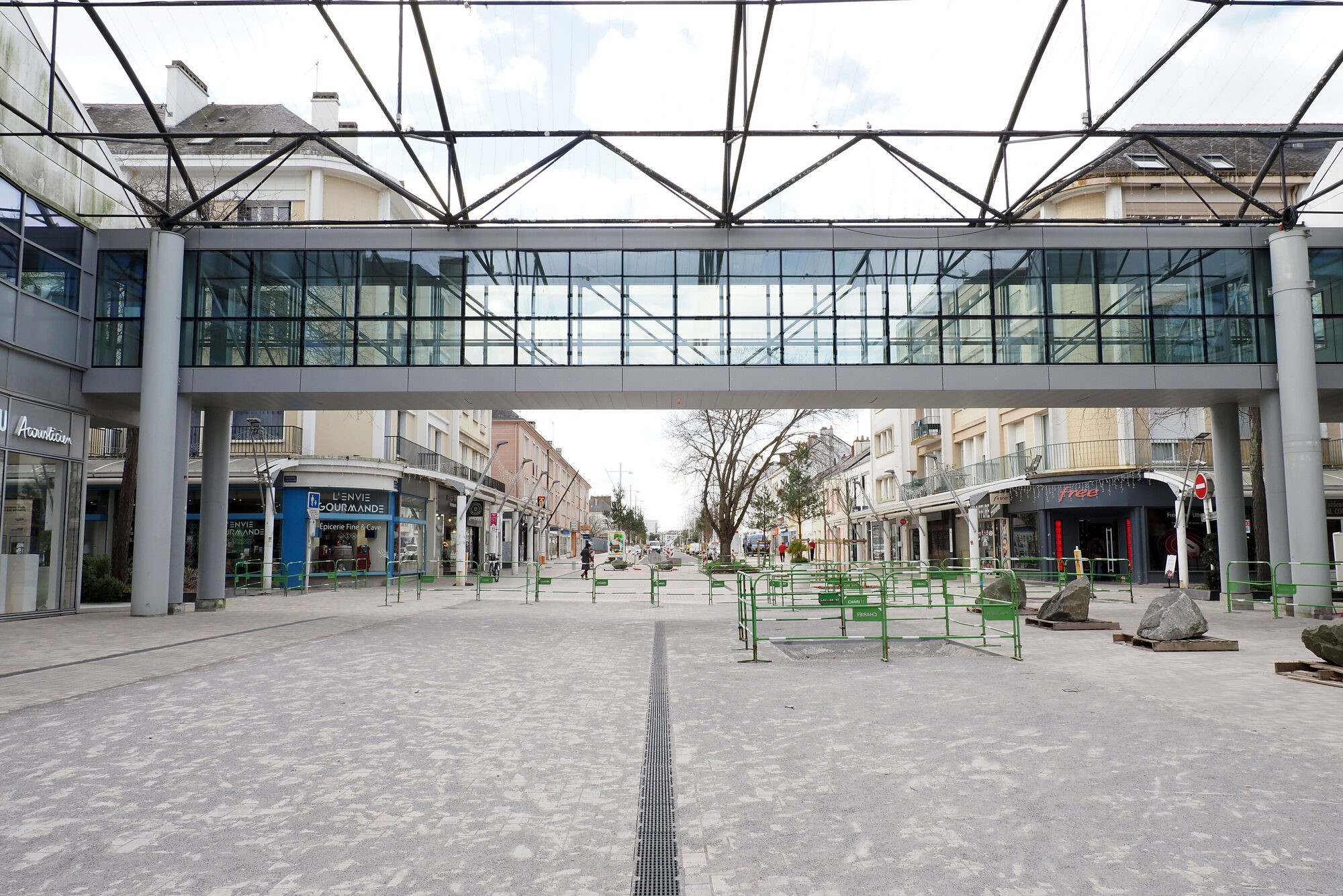 Sur l’avenue Albert-de-Mun (entre l’avenue Victor-Hugo et le Paquebot) et la rue des Halles, les travaux majeurs sur la voirie et les trottoirs sont désormais achevés. Les plantations ont été réalisées, et de nouveaux mâts d’éclairage ont été installés. Sous les passerelles du Paquebot, une traversée piétonne pavée améliore l’accessibilité et apaise la circulation.