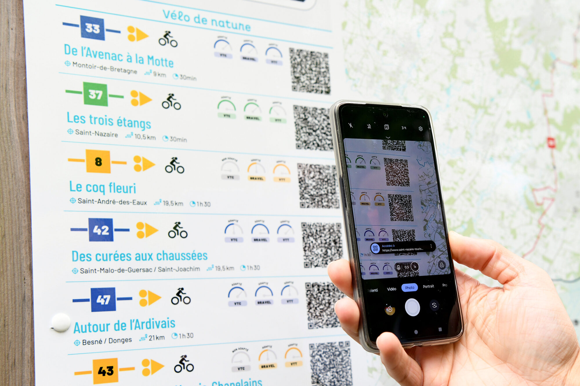 La station donne accès à dix itinéraires de VTT, VTC et Gravel — plus de 300 km autour de Saint-Nazaire et de la Brière — avec leurs distances, durées et niveaux de difficulté. Les traces GPX et informations pratiques sont disponibles sur le site de Saint-Nazaire Renversante. L’outil a été conçu avec la Fédération Française de Vélo (Codep 44) et Saint-Nazaire Agglomération.
