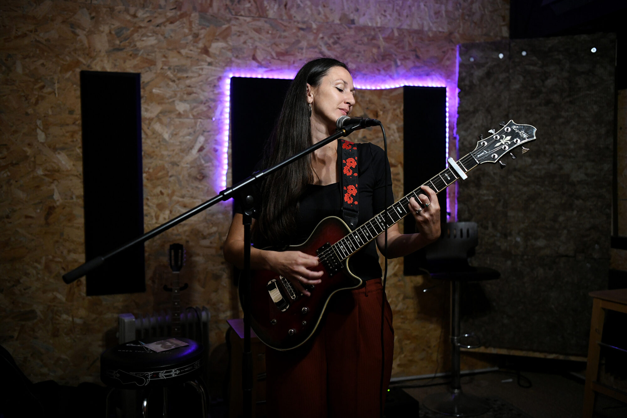 « J’avais commencé à écrire ce premier EP en 2021. J’étais venue au studio avec quelques compositions à la guitare. Puis un piano a été installé ici et j’ai eu un coup de cœur pour celui-ci. Avec Roland Spenlé à la contrebasse, on a alors enregistré toutes les chansons en piano-voix. A la sortie du disque, j’avais d’autres morceaux en tête à la guitare et l’envie de revenir au studio. »